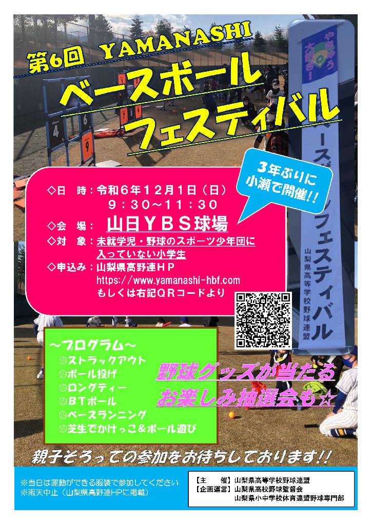 12月5日(日)に山日YBS球場で第3回ベースボール・フェスティバルを開催します。
