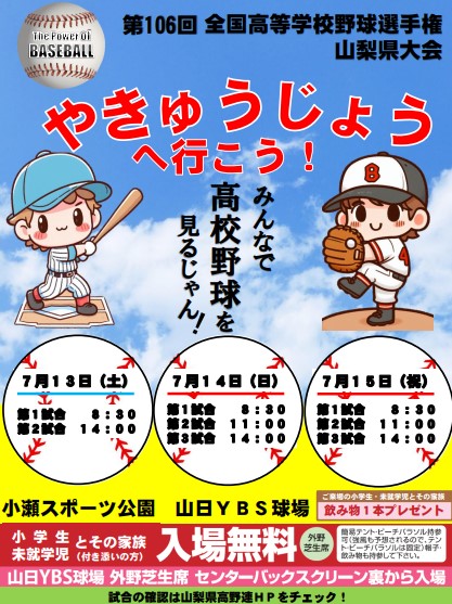 | 山梨学院大付 - 日川 | 7/22(金) 12:30 | 小瀬球場 |